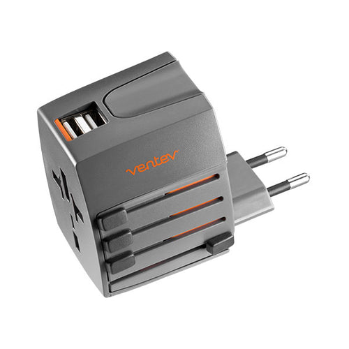 Ventev 12W Global Charginghub 300 Dual USB A Wall Charger And Travel Adapter - Gray